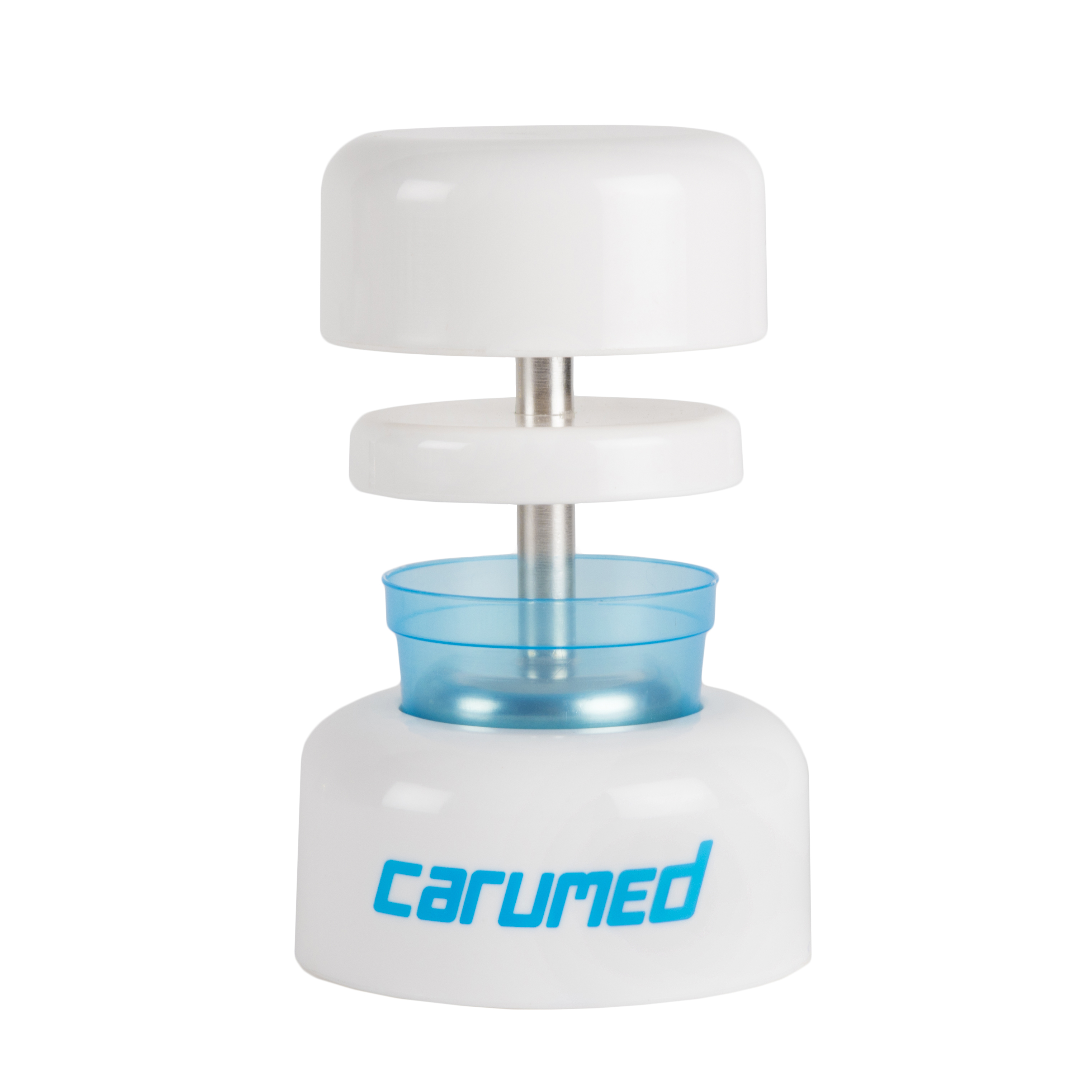 Krossar tabletterna genom mortling, snabbt och effektivt direkt i en bred medicinbägare. Detta är andra generationens mortelkross där den krossande delen nu består helt av metall vilket ger en stabilare produkt och där tidigare skarv mellan plast och metall har eliminerats. Designad med ergonomiskt grepp.